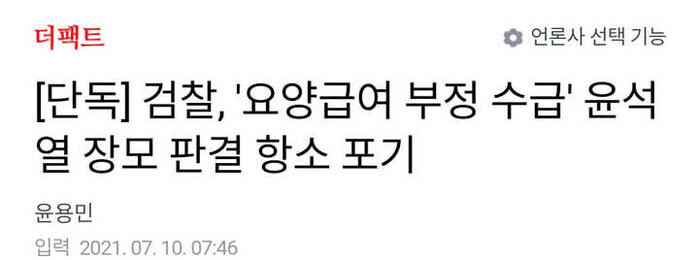 검찰 측은 윤 전 총장의 장모 최 씨에게는 항소보다는 법의 교묘함을 이용해서 검찰때문에 감형되었다는 비난을 피하면서도 최 씨의 형량 감형이 가능하도록 항소포기를 선택했다는 비난이 제기된다.