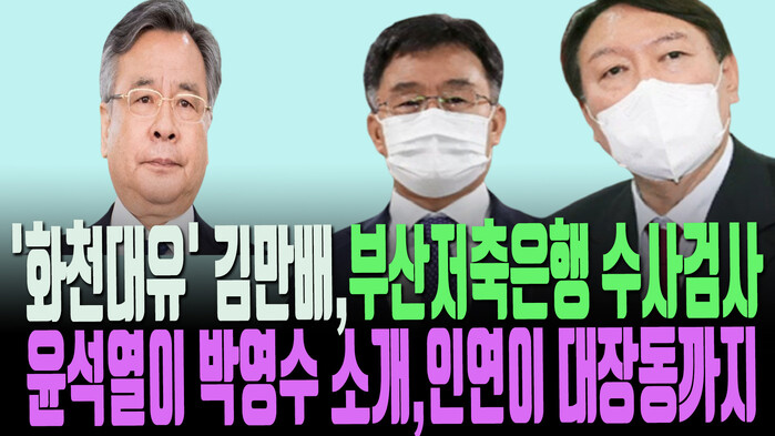 성남 대장동 개발비리 의혹의 핵심인 화천대유자산관리 (이하 화천대유) 실질적 소유자 김만배 전 법조기자가 대장동 개발에 뛰어든 것은 당시 대검 중수2과장이던 국민의힘 윤석열 대선 경선 후보가 맡고 있던 부산저축은행의 대장동프로젝트금융투자 부실대출 수사 당시 사건에 관련 있던 A씨에게 윤후보와 친분이 있는 박영수 전 특검을 변호인으로 소개하면서 부터 이어진 관계로 시작됐다는 정황이 나왔다.