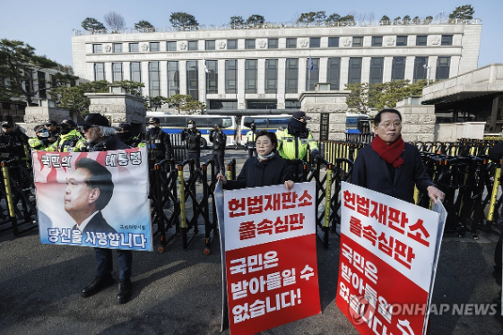 | ▲ 헌재 앞에서 시위하는 김정재 국민의힘 의원 (왼쪽) (사진=연합뉴스) |