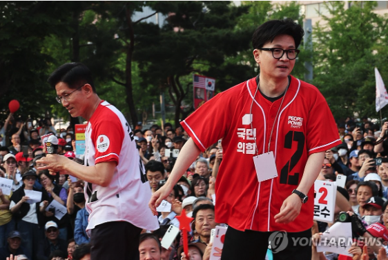 | ▲ 서울 도봉구 방학사거리에서 국민의힘 김문수 대선후보를 한동훈 전 대표가 지원유세 했다. 2025.5.26 (사진=연합뉴스) |