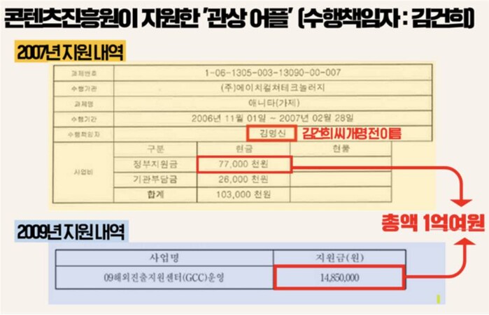 -사업계획서가 그대로 김건희 씨의 박사논문으로 둔갑, 국가보조금법 위반.