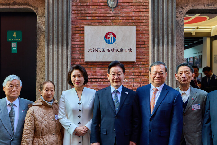 | ▲ 이재명 대통령과 김혜경 여사가 7일 중국 상하이 대한민국 임시정부 청사에서 열린 청사 건립 100주년 기념식을 마친 뒤 독립유공자 후손들과 기념촬영을 하고 있다. 2026.1.7 (사진=연합뉴스) |