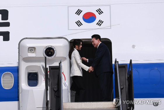 | ▲ 2024.7.12 미국 덜레스 국제공항에서 나토 75주년 정상회의 참석 일정 마친 뒤 전용기에 탑승하는 윤석열과 김건희 (사진=연합뉴스) |