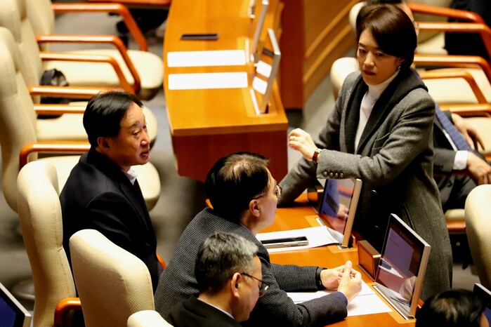 국민의힘 필리버스터로 공소청법 처리가 하루 연기된 19일, 국회 본회의장에는 법안 처리를 둘러싼 긴장감이 이어졌다. 오랜 시간 이어진 검찰개혁 논의의 한 장면이 국회 곳곳에서 포착됐다. 공소청법은 20일 본회의 표결에 부쳐질 예정이다.