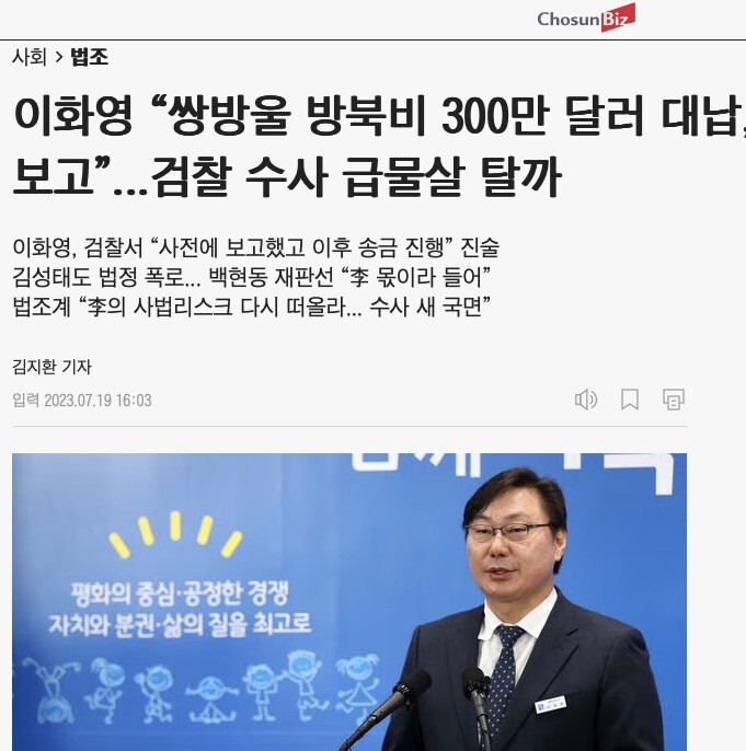 | ▲검찰발이라며 보도한 조선일보의 두번째 기사. 이화영은 이를 공식 부인했다 (사진=연합뉴스) |