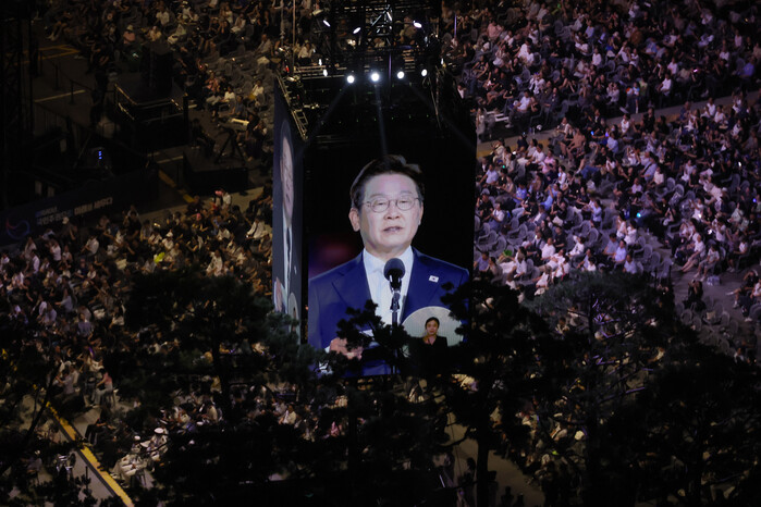 1만여 명의 국민이 지켜보는 가운데 "주권자의 충직한 일꾼이 되겠다"고 다짐한 이 대통령의 '국민께 드리는 편지'가 낭독되자, 광장은 다섯 차례의 뜨거운 박수와 '다시 만난 세계'의 벅찬 합창으로 화답했다.