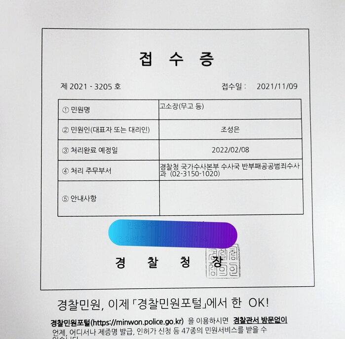 조성은씨는 고발전문 법세련으로 지칭되는 이종배씨를 11월9일 '특가법상 무고 이하의 罪' 로 고소접수 했다.