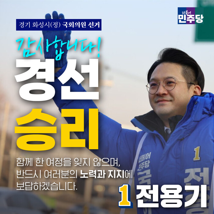 이번 총선에서 새롭게 만들어진 경기 화성정은 친명계 비례대표 전용기 의원이 1등을 차지했다.