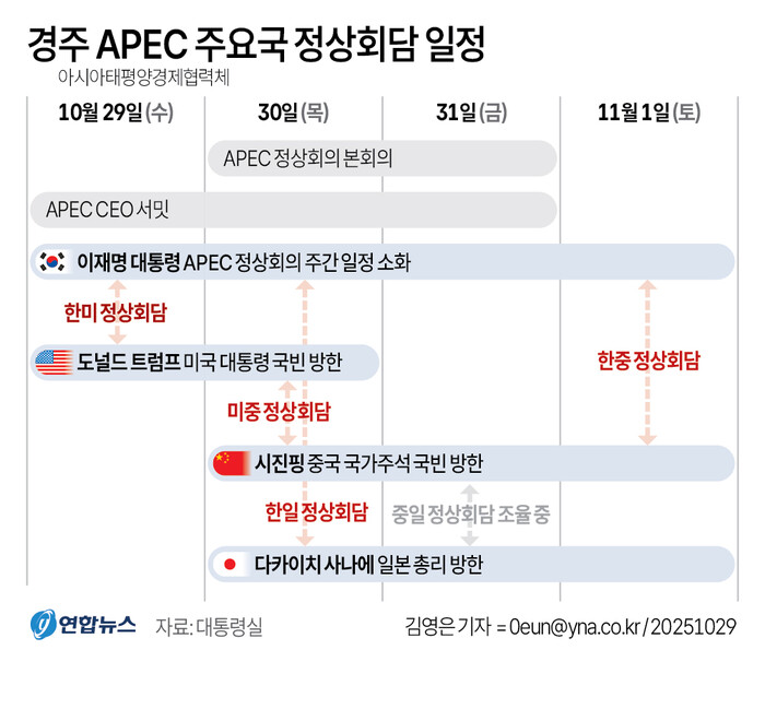 | ▲ 경주 APEC 주요국 정상회담 일정 (제공=연합뉴스) |