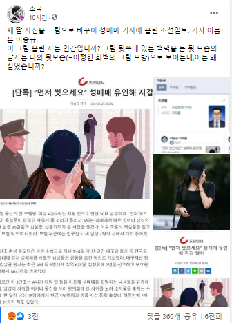 그런 기사 내용에 참고용으로 게재된 일러스트는 마치 기사 내용과 같이 50대 남자 성 매수자와 20대 여성 성매매자가 서로 성매매 관련해 통화하는 모습을 연상시키고 있다. 참고로 조국 전 장관은 1965년생으로 50대이고 딸 조민 양은 1994년생으로 20대이다.
