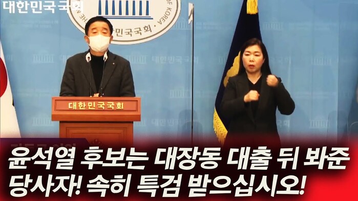 “윤석열 후보와 국민의힘은 대장동 특검 받을 것을 촉구한다”