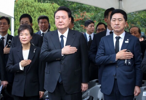 | ▲ 2023년 10월26일 박정희 서거 제44주기 추도식, 박근혜 전 대통령과 윤석열 대통령 (사진 = 연합뉴스) |