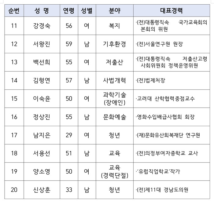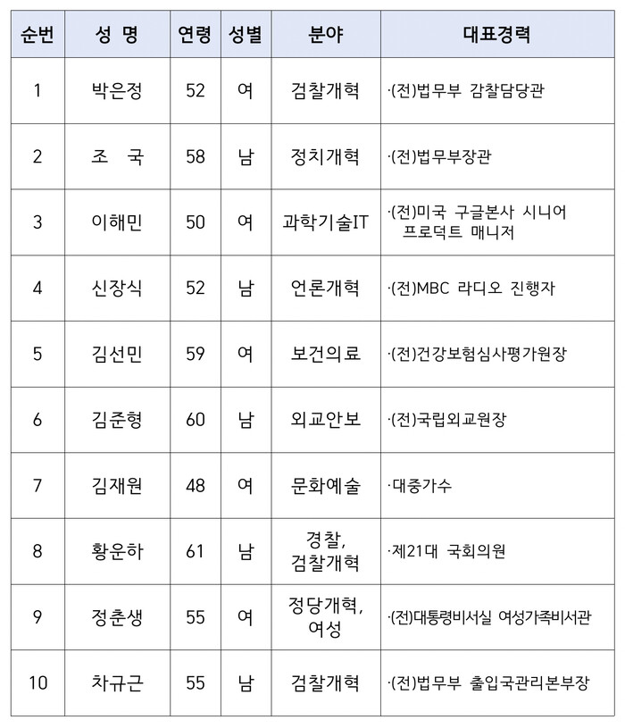 | ▲조국혁신당 비례순번 1번부터 20번까지 (이미지=조국혁신당) |