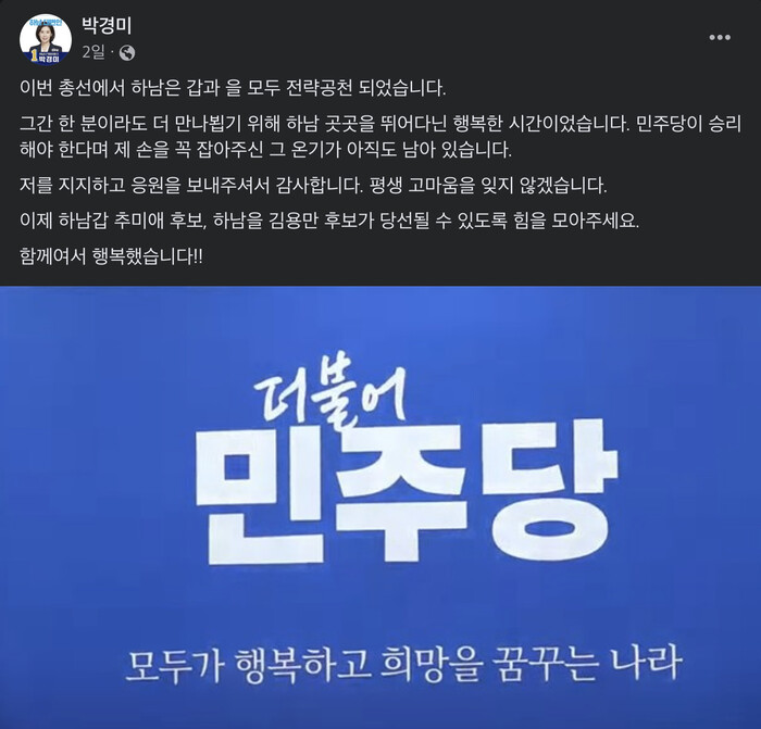 | ▲박경미 의원 페이스북 화면 캡쳐 |