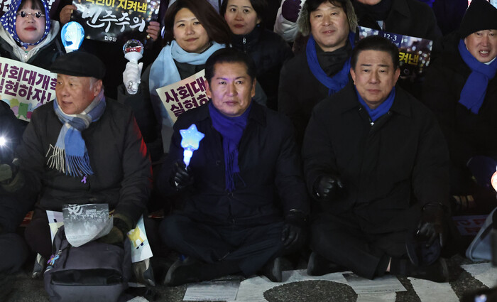 국회의사당 인근에서는 진보·보수 집회가 동시에 열렸다. ‘내란청산·사회대개혁 비상행동 기록기념위원회’가 주도한 시민대행진에는 각종 깃발과 응원봉을 든 시민들이 모여 “내란 청산”을 외쳤다. 지난겨울 은박지를 뒤집어쓰고 대통령 관저 앞에서 밤샘 시위를 이어갔던 이른바 ‘키세스 군단’도 다시 등장해 1년 전 광장의 기억을 되살렸다.