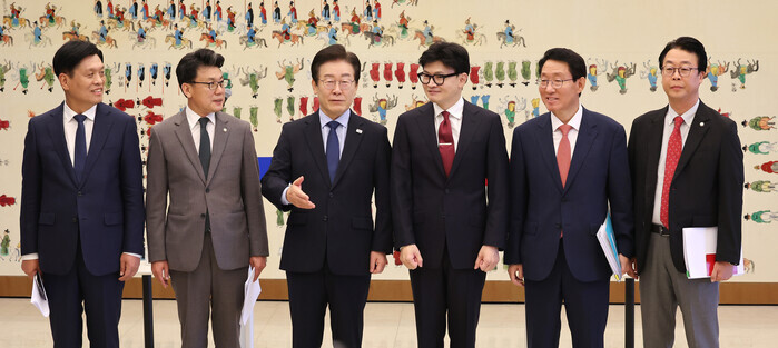 | ▲ 기념촬영하는 여야 대표 (사진=연합뉴스) |
