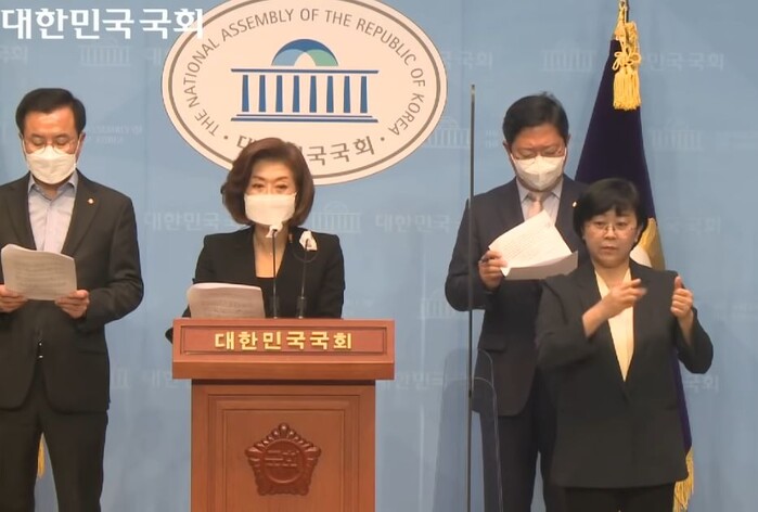 더불어민주당 의원들은 15일 오전 9시 30분 국회 소통관에서 ‘김기현 형제 비리 고소인에 대한 고발사주 및 울산사건 고발사주 의혹’ 관련 기자회견을 열었다. 양이원영 의원과 김승원 의원이 공동주최한 이번 기자회견에는 윤영덕, 유정주, 장경태 의원과 김용민 최고위원이 참석했다.