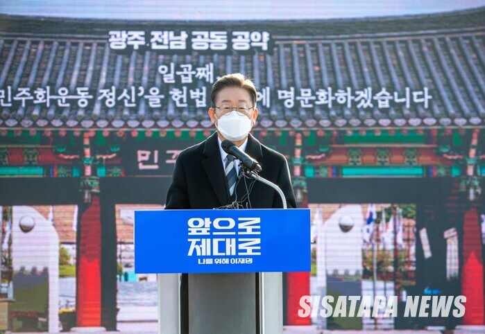 유능한 정부, 성과로 증명하는 정치, 주권자와의 약속은 반드시 지키는 나라, 저 이재명이 할 수 있습니다. 김대중 대통령님과 노무현 대통령님, 문재인 대통령님을 잇는 제4기 민주 정부를 우뚝 세우고 더 활기차고 잘 사는 광주, 반드시 만들겠습니다.