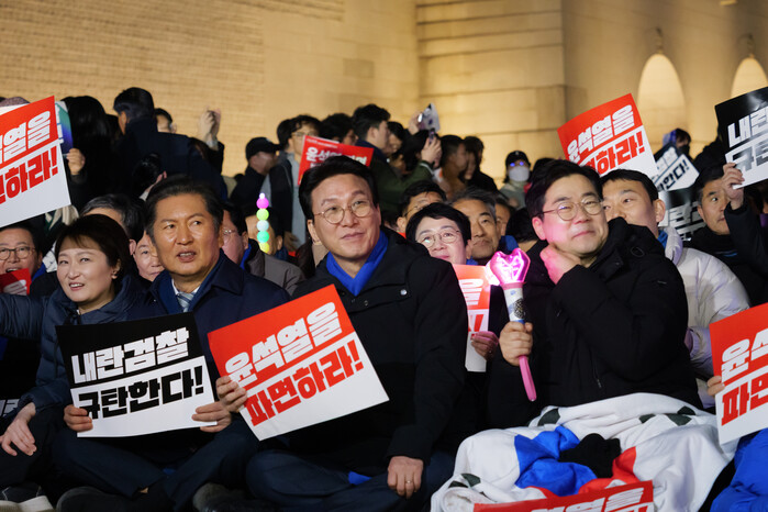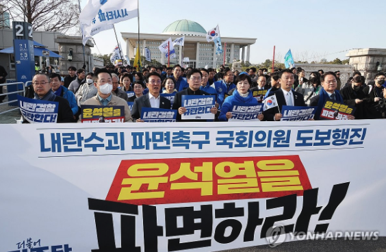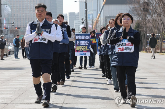 탄핵심판 선고일까지 국회에서 광화문까지 행진을 계속한다는 방침이다. 민주당은 광화문에 도착해 윤석열 파면 촉구 집회에도 합류했다.