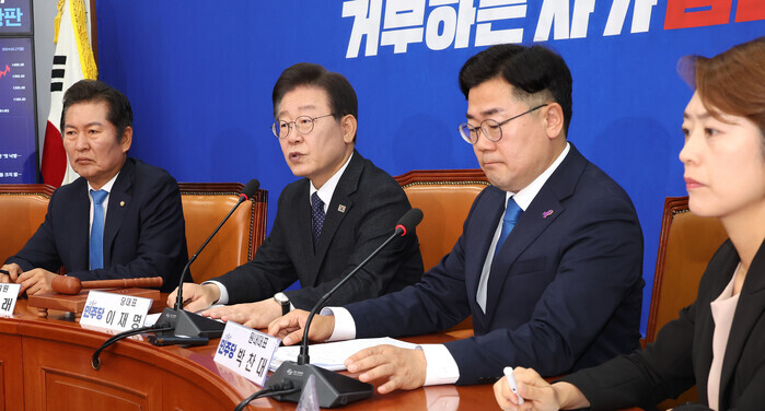 박찬대 원내대표는 최고위에서 "특검법에 찬성하는 여론이 압도적으로 많은데, 국민을 대표하는 국회가 진실 규명에 나서는 것은 지극히 당연하다"고 주장했다.