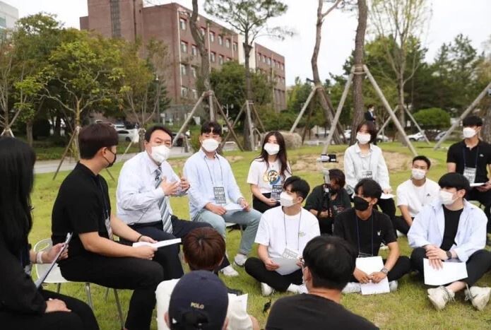 | ▲지난 13일 안동대학교를 찾아 대학생들과 대화하고 있다. 윤 전 총장 페이스북 |