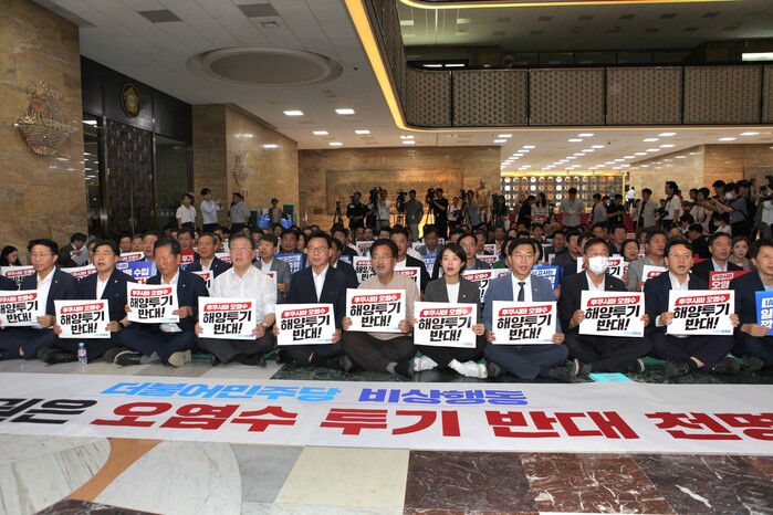 더불어민주당이 일본 후쿠시마 원전 오염수 방류에 반대하는 1박2일 철야농성에 돌입했다.