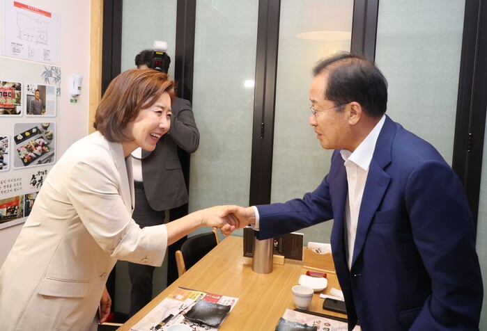 나 의원은 '홍 시장의 지지선언으로 봐도 되느냐'는 기자들의 질문에 "(홍 시장과의 회동 전에 만났던) 이철우 경북도지사에 이어 홍 시장도 같은 의사를 표시했다고 보면 될 것 같다"고 언급했다.
