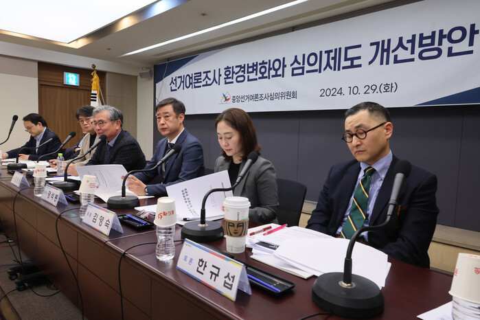 중앙선거여론조사심의위원회(여심위)는 29일 '명태균 의혹'으로 도마 위에 오른 비공표 선거 여론조사 문제와 관련해 사전신고 의무화 방안 등의 보완책을 고려하겠다고 밝혔다.