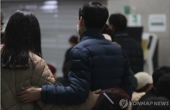 한 70대 부부는 아들 가족 4명의 생사 여부를 확인하기 위해 이곳을 찾았다가 “아이고 우리 애들 불쌍해서 어떻게”라고 절규했다. 희생자의 아버지라고 밝힌 한 남성은 “비행기에 탄 아들 부부의 소식을 듣기 위해 병원에 연락했지만 확인이 안된다고 해 무작정 공항으로 달려 왔다”고 했다.