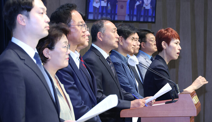 | ▲기자회견 갖는 민주당 산자위 내정 의원들 (사진=연합뉴스) |
