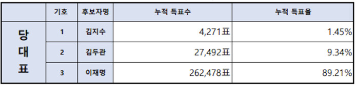 | ▲4주차 누적 당대표 득표수 및 득표율 화면캡쳐 |