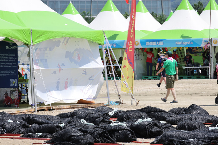 | ▲그늘막이 공수되어 도착한 잼버리 (사진=연합뉴스) |