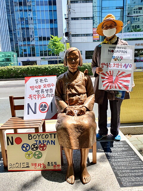 원전 수 방류 저지 농성은 현재 일본 대사관 앞에서 진행 중이며, 전 국민이 분노하는 상황이다. 일본의 방류지역 수산업자들과 함께 일본 미나마타병 수은중독 피해자들도 후쿠시마 오염수 방류 반대성명을 발표하였다.