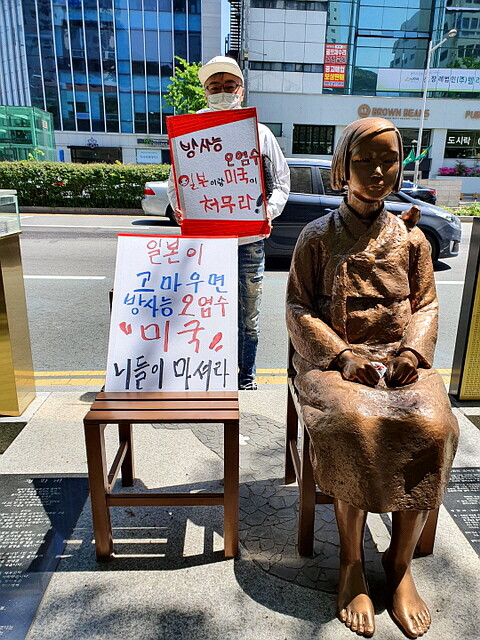 | ▲개혁국민운동본부 부산 여성위원회 소녀상앞 1인시위 |