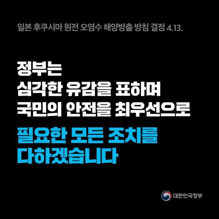 외교부는 우리나라가 직접적 피해를 볼 우려가 크고, IAEA를 통한 검증과 별도로 추가정보와 협의 필요성을 일본 측에 전달할 계획이고, 정부는 국민의 안전과 환경 보호를 위해 모든 외교적 노력을 다할 것이라고 한다.